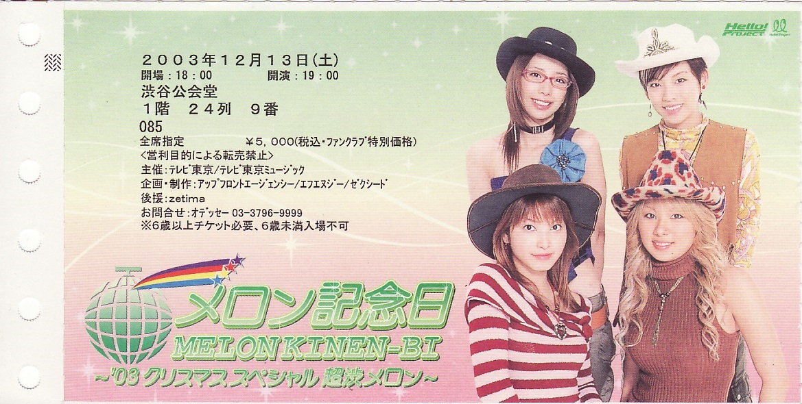 メロン記念日「'03クリスマススペシャル 超渋メロン」チケット半券
