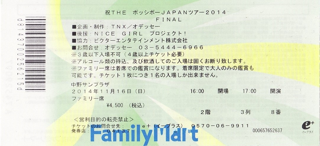 THE ポッシボー「中野サンプラザ」公演チケット半券