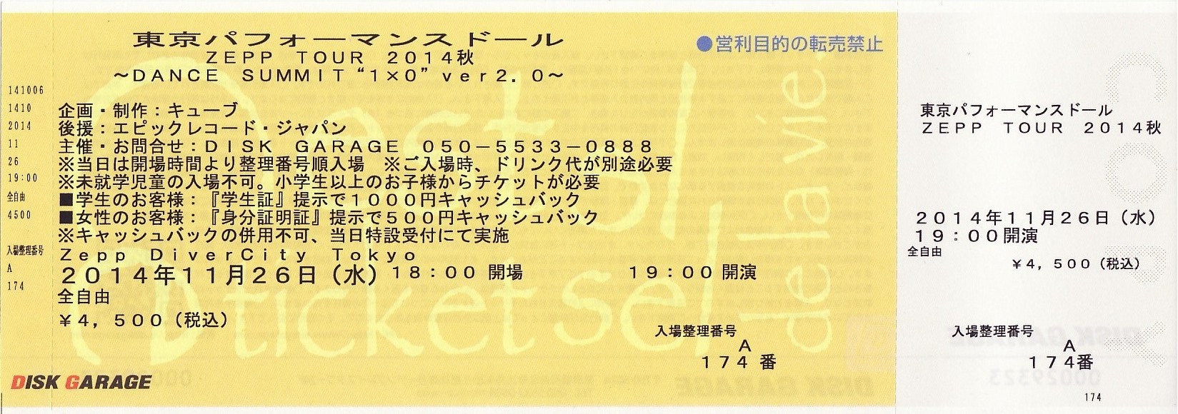※席種:全自由(整理番号)