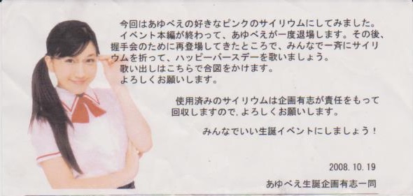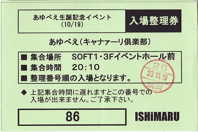 キャナァーリ倶楽部「あゆべえ 24才生誕記念イベント」入場整理券&有志配布チラシ