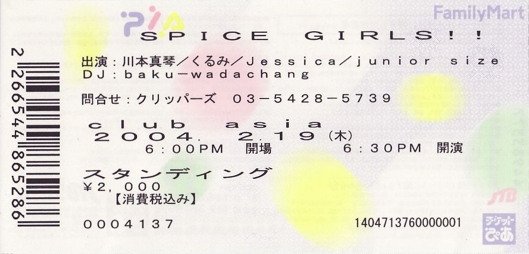 川本真琴・くるみ出演「SPICE GIRL!!」チケット半券