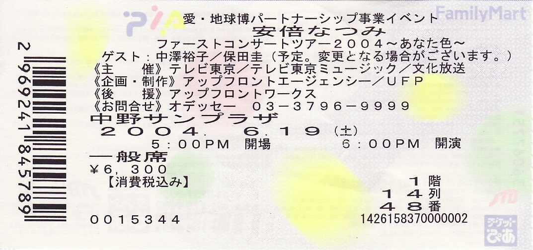 安倍なつみ「コンサートツアー2004~あなた色」チケット半券