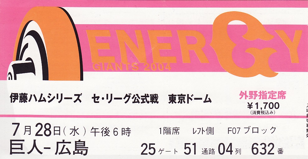 セ・リーグ公式戦「巨人-広島」東京ドーム チケット半券
