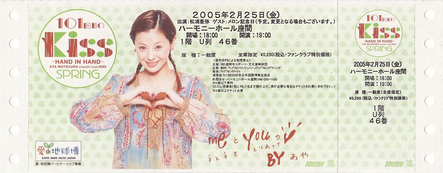 松浦亜弥 2005春「101回目のKISS」チケット半券