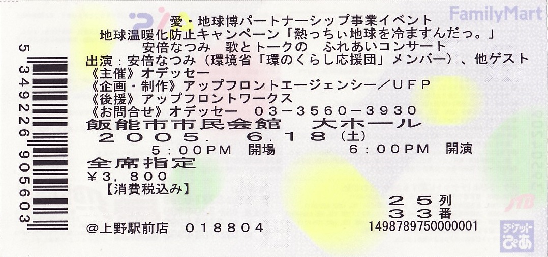 安倍なつみ「歌とトークのふれあいコンサート」チケット半券