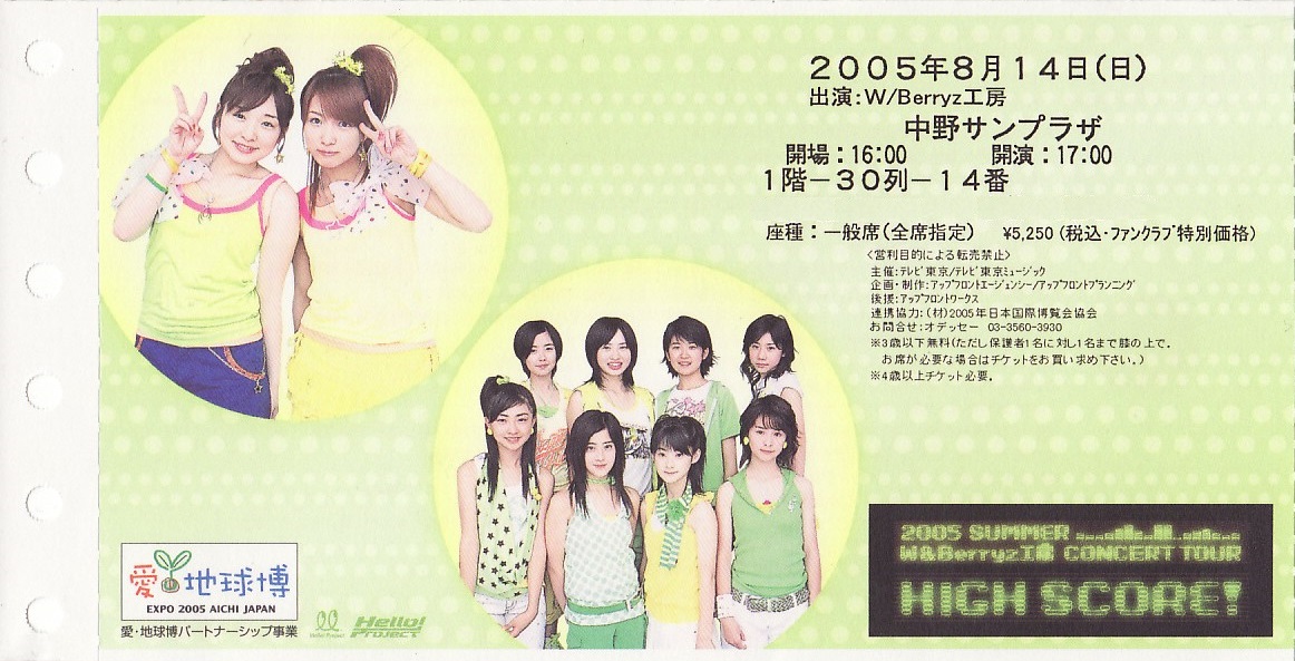 2005.08.14 W&Berryz工房 コンサートツアー「HIGH SCORE!」チケット半券