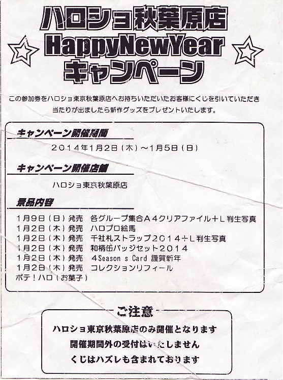 ハロショ秋葉原店 Happy New Year キャンペーン 参加券