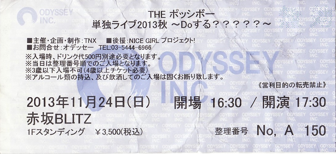THE ポッシボー 単独ライブ2013秋「Doする?????」チケット半券