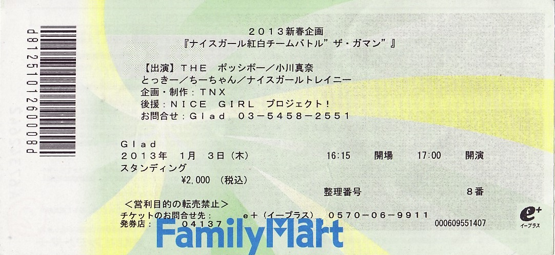2013新春企画「ナイスガール紅白チームバトル」チケット半券
