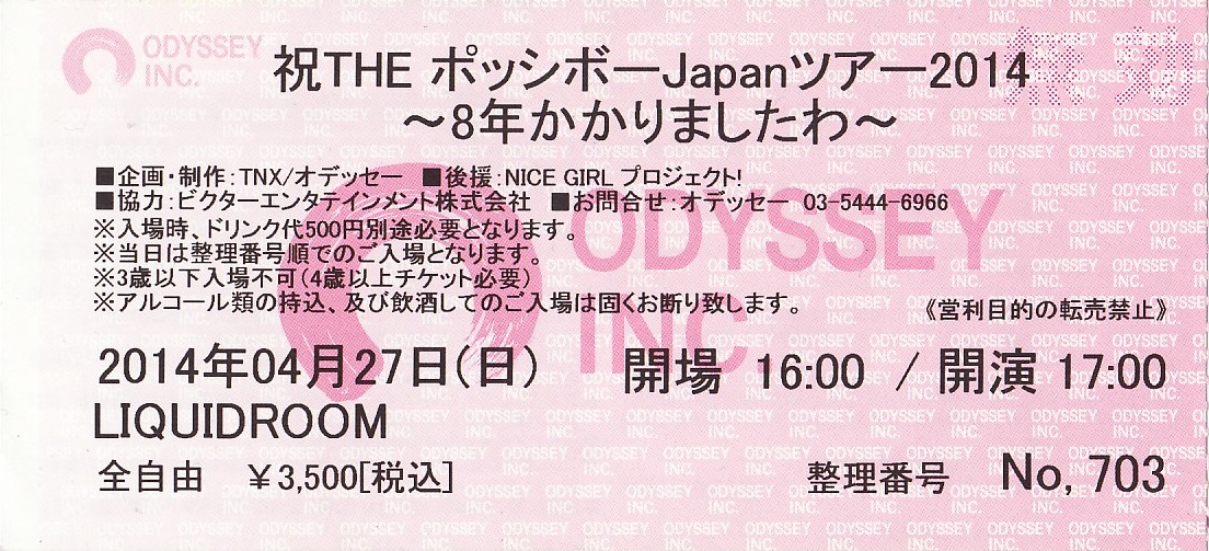 THE ポッシボー「JAPANツアー2014」恵比寿LIQUIDROOM チケット半券