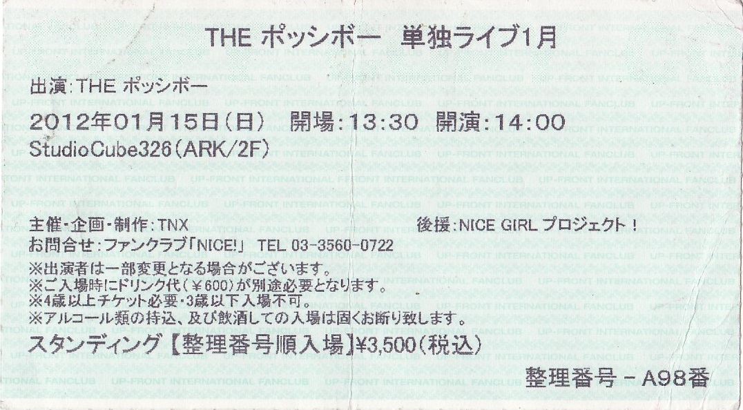THE ポッシボー 2012「単独ライブ1月」チケット半券