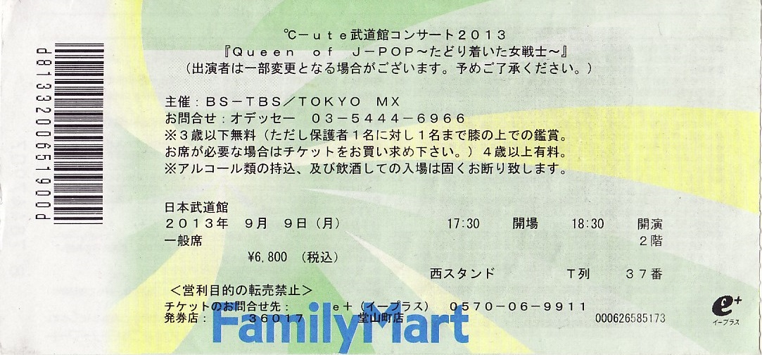 ℃-ute 武道館2013「Queen of J-POP」チケット半券
