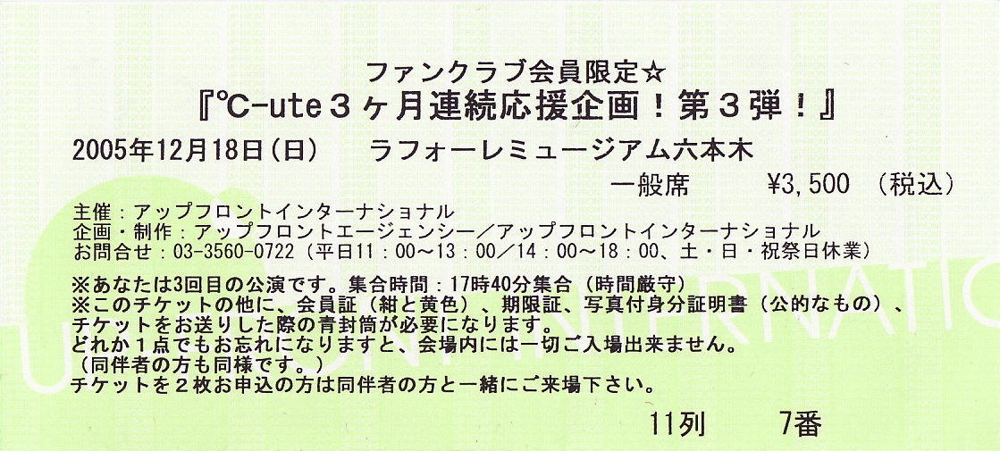 ℃-ute「3ヶ月連続応援企画 第3弾」チケット半券
