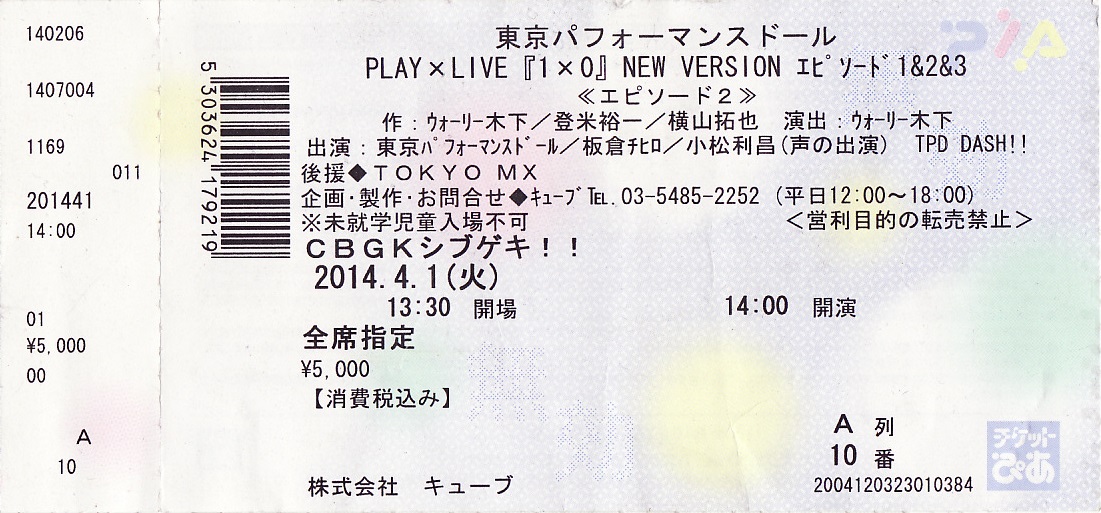 TPD PLAY×LIVE『1×0』NEW VERSION EPISODE 2 チケット半券