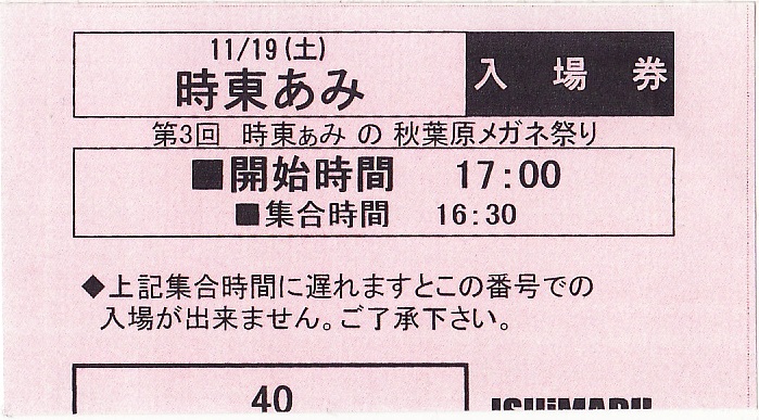 第3回「時東ぁみの秋葉原メガネ祭り」入場券