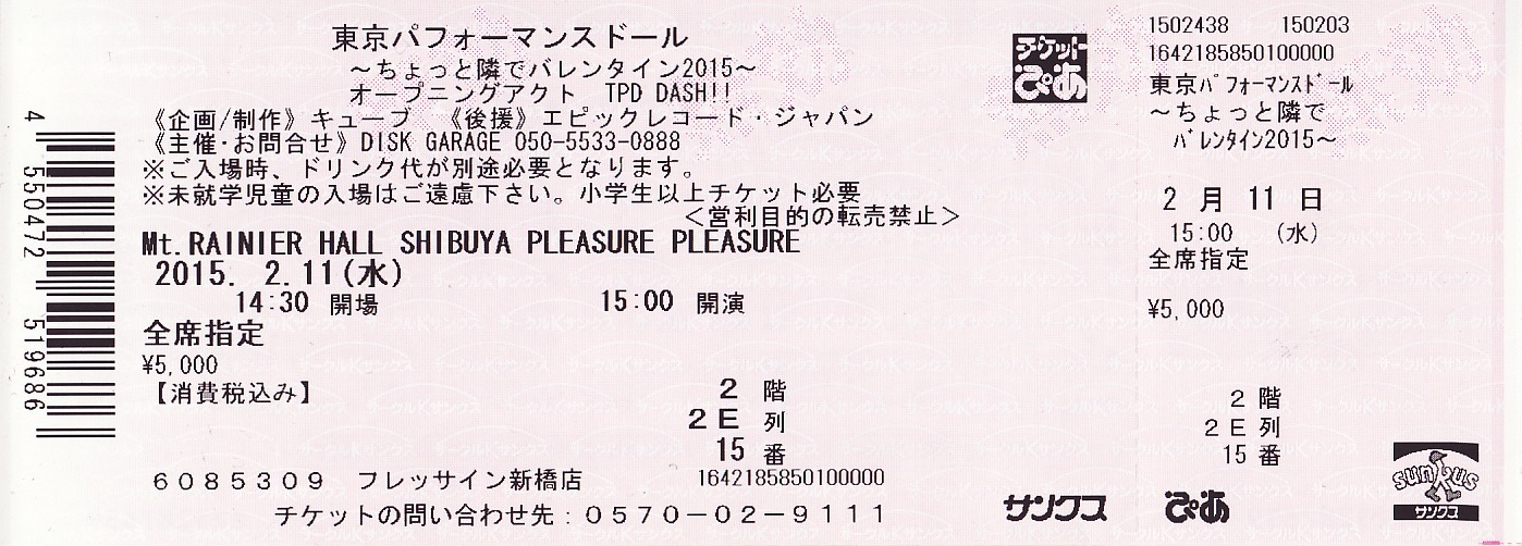 東京パフォーマンスドール「バレンタインライブ2015」チケット