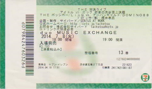 THE 対決ライブ「アイドル vs ロック 初夏の渋谷頂上決戦」チケット半券