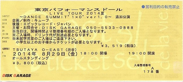 東京パフォーマンスドール「DANCE SUMMIT“1×0”ver1.0」チケット半券