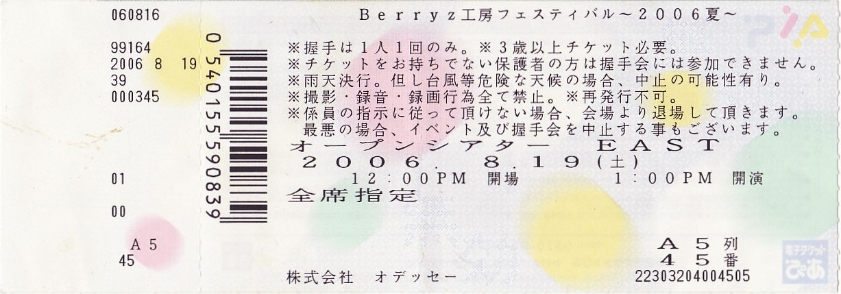 Berryz工房フェスティバル~2006夏~チケット半券