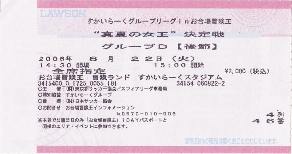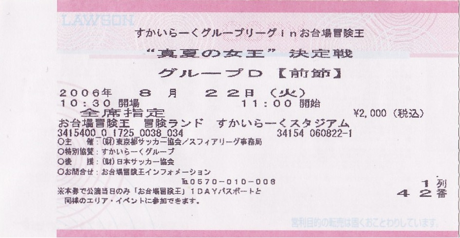 アイドルフットサル“真夏の女王”決定戦 グループD【前節・後節】チケット半券