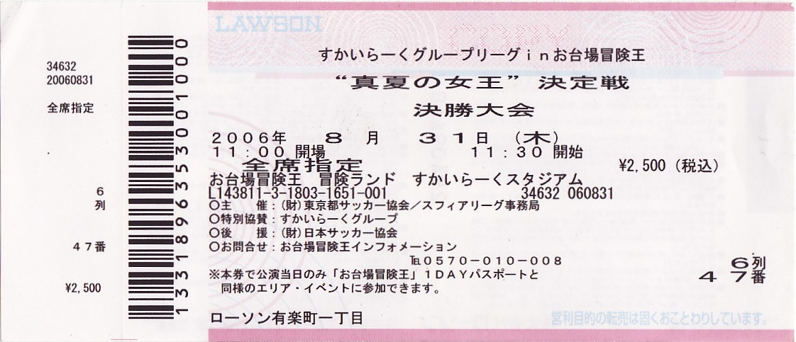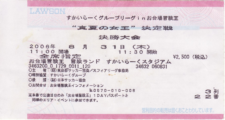 アイドルフットサル“真夏の女王”決定戦「決勝戦」チケット半券