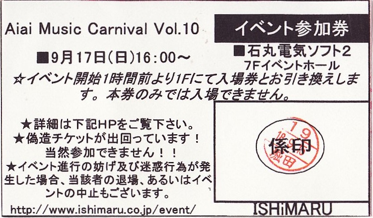 「Aiai Music Carnival Vol.10」イベント参加券&入場券