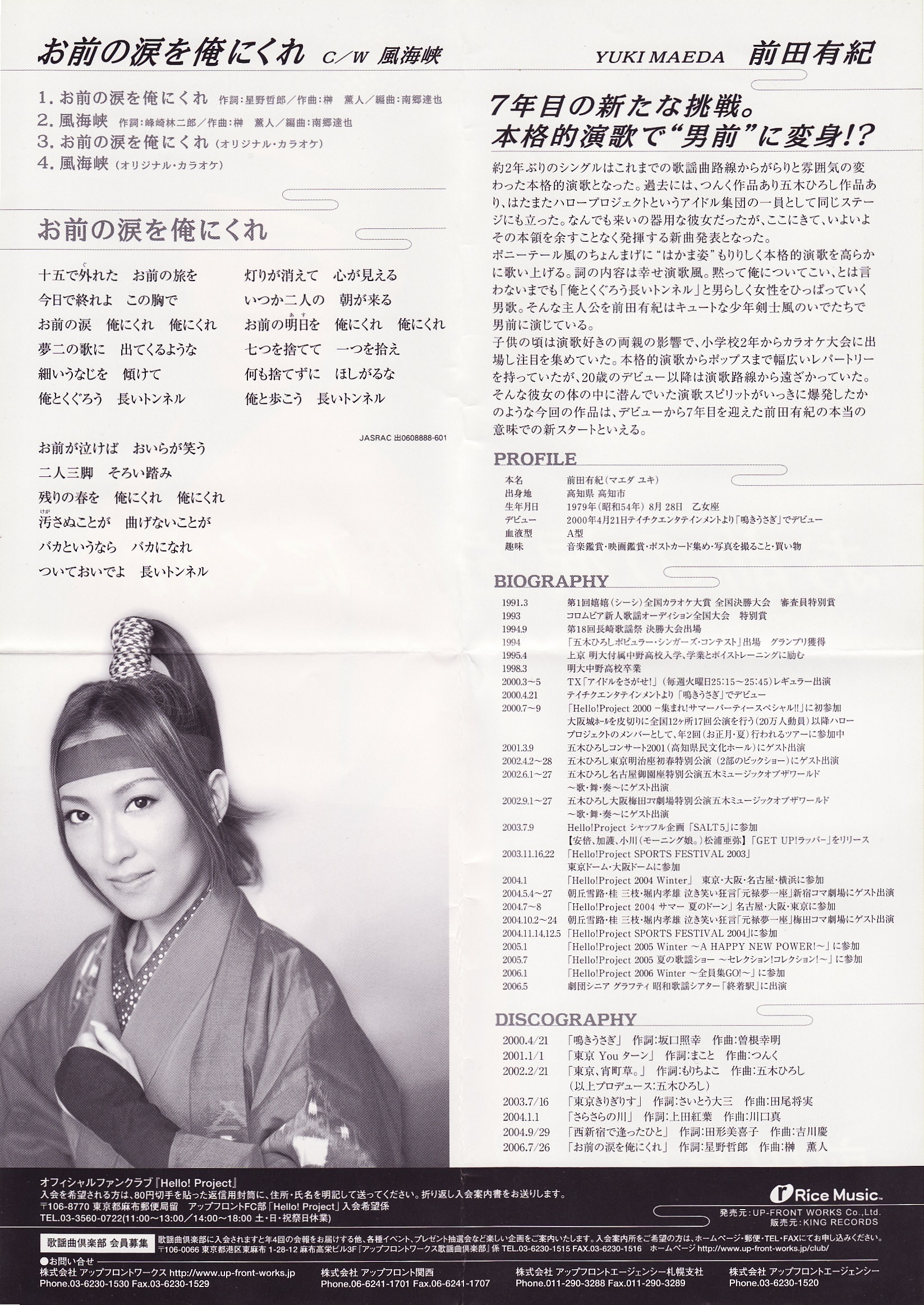 2006年7月26日発売 前田有紀「お前の涙を俺にくれ」