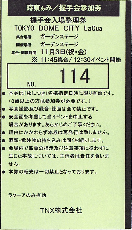 時東ぁみ『I'm a lady ~じれったい私~』握手会参加券