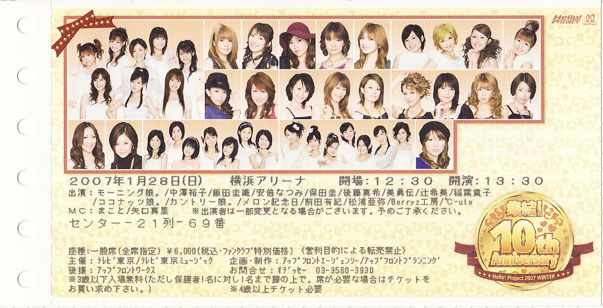 ハロプロ2007冬「集結!10th Anniversary」チケット半券