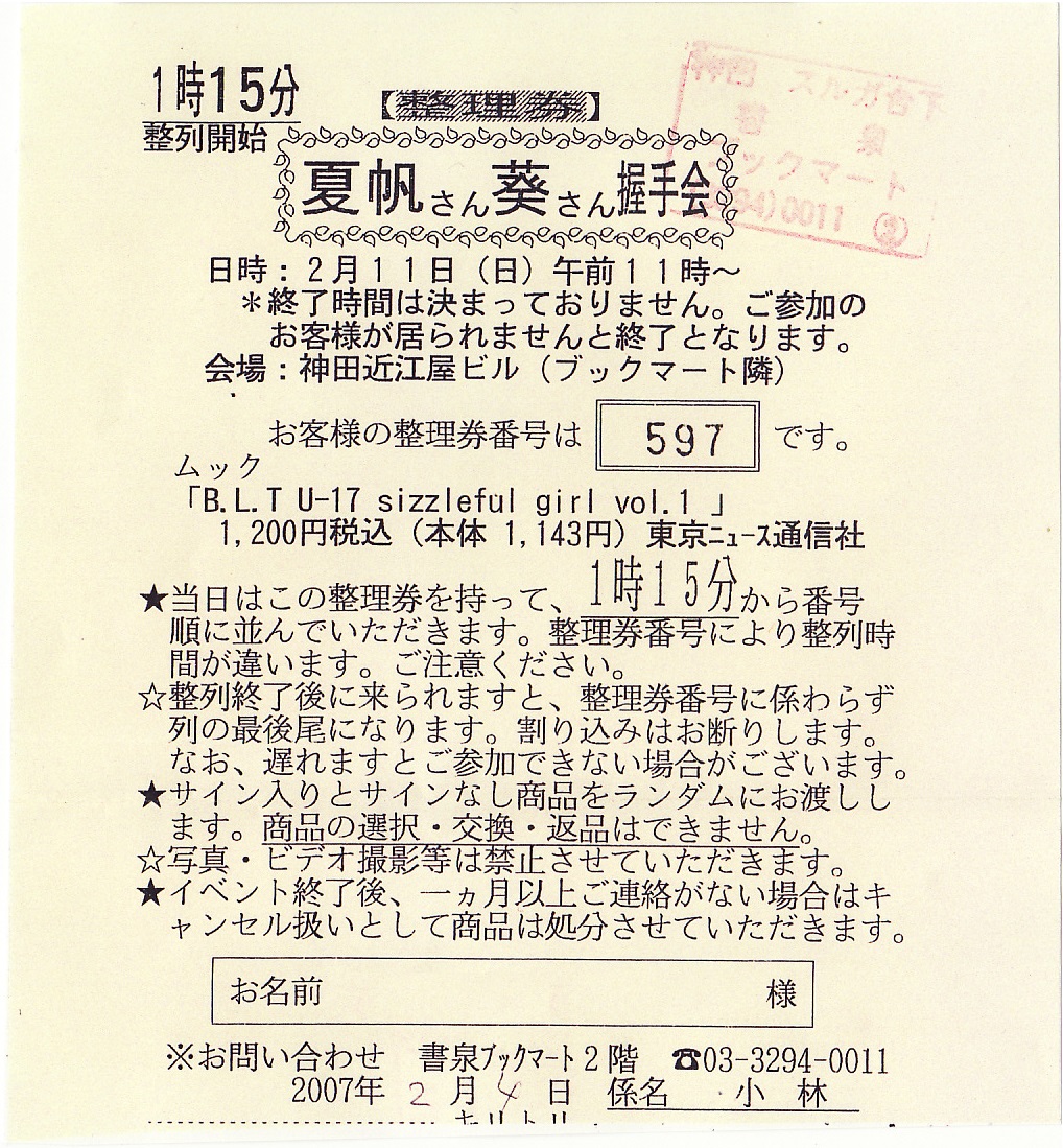 夏帆&葵「B.L.T. U-17 Sizzleful Girl Vol.1」整理券