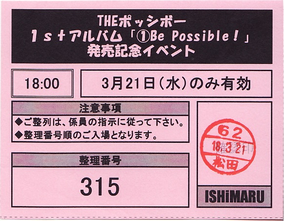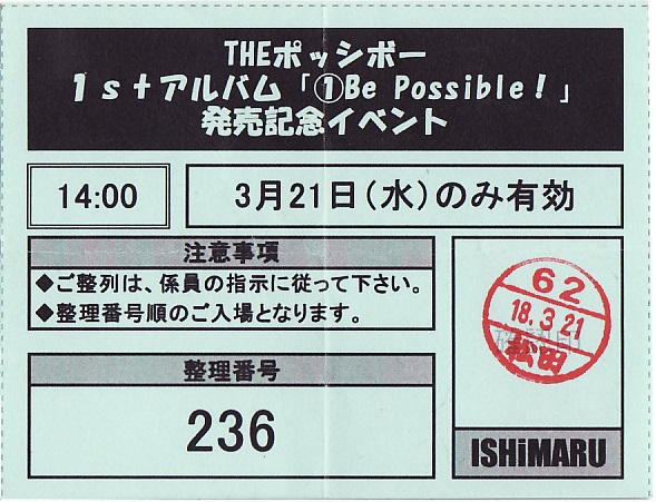 THE ポッシボー 1stアルバム「①Be Possible!」入場整理券