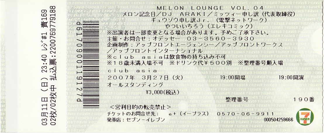 メロン記念日「メロンラウンジ VOL.04」チケット半券&グッズ台紙