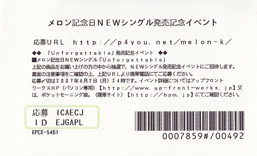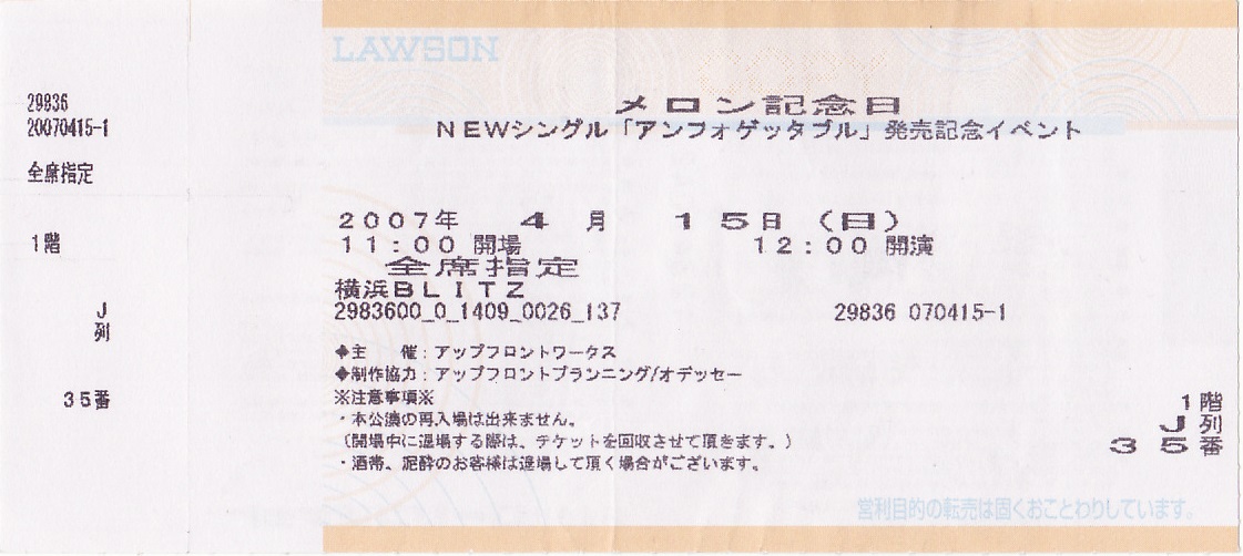 メロン記念日「アンフォゲッタブル」イベントチケット半券