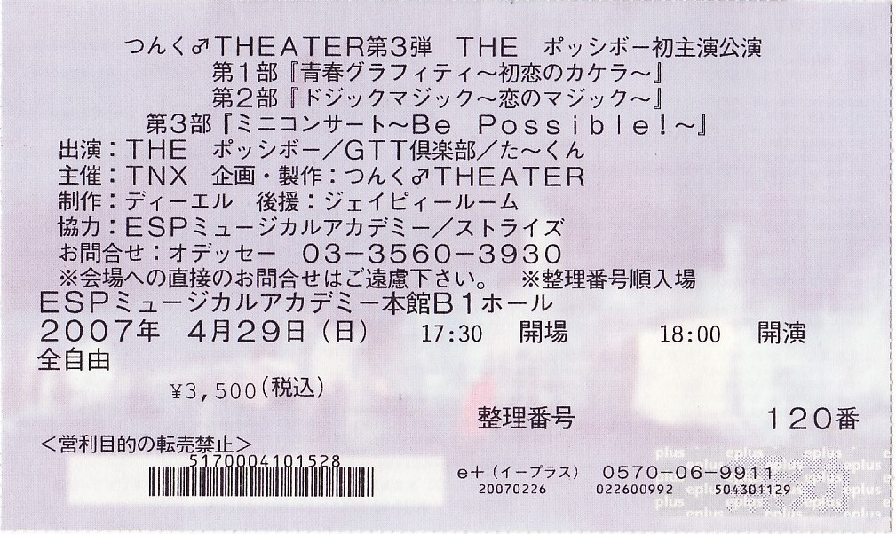 2007.04.29「つんく♂シアター第3弾」チケット半券