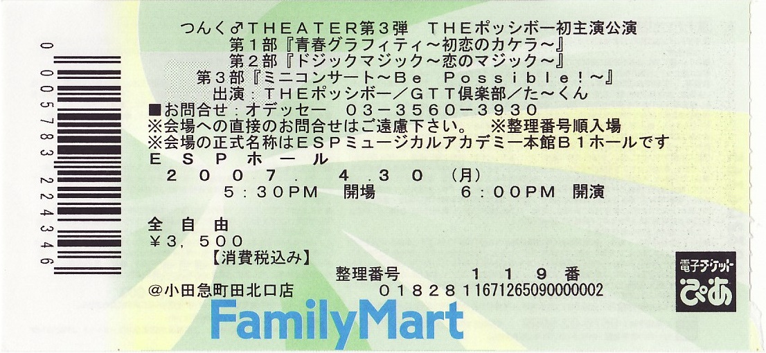 2007.04.30「つんく♂シアター第3弾」チケット半券
