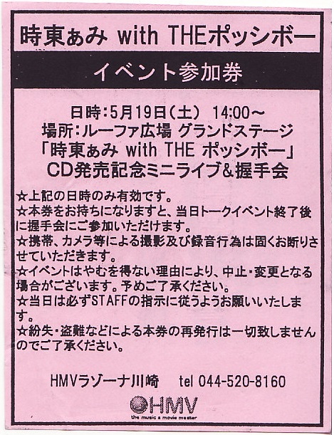 ラゾーナ川崎「時東ぁみ with THE ポッシボー」イベント参加券(握手券)