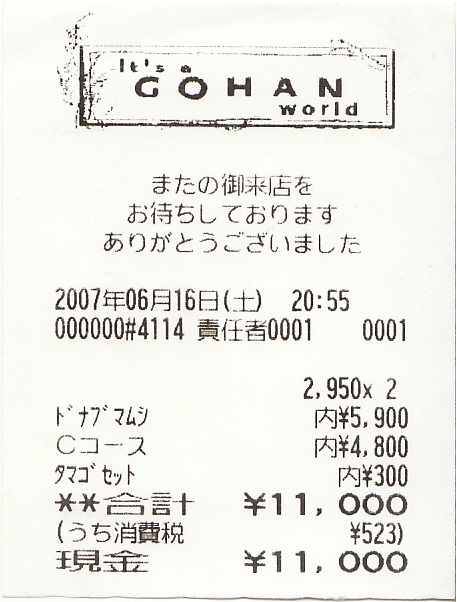 つんく♂プロデュース「ゴハンワールド」レシート