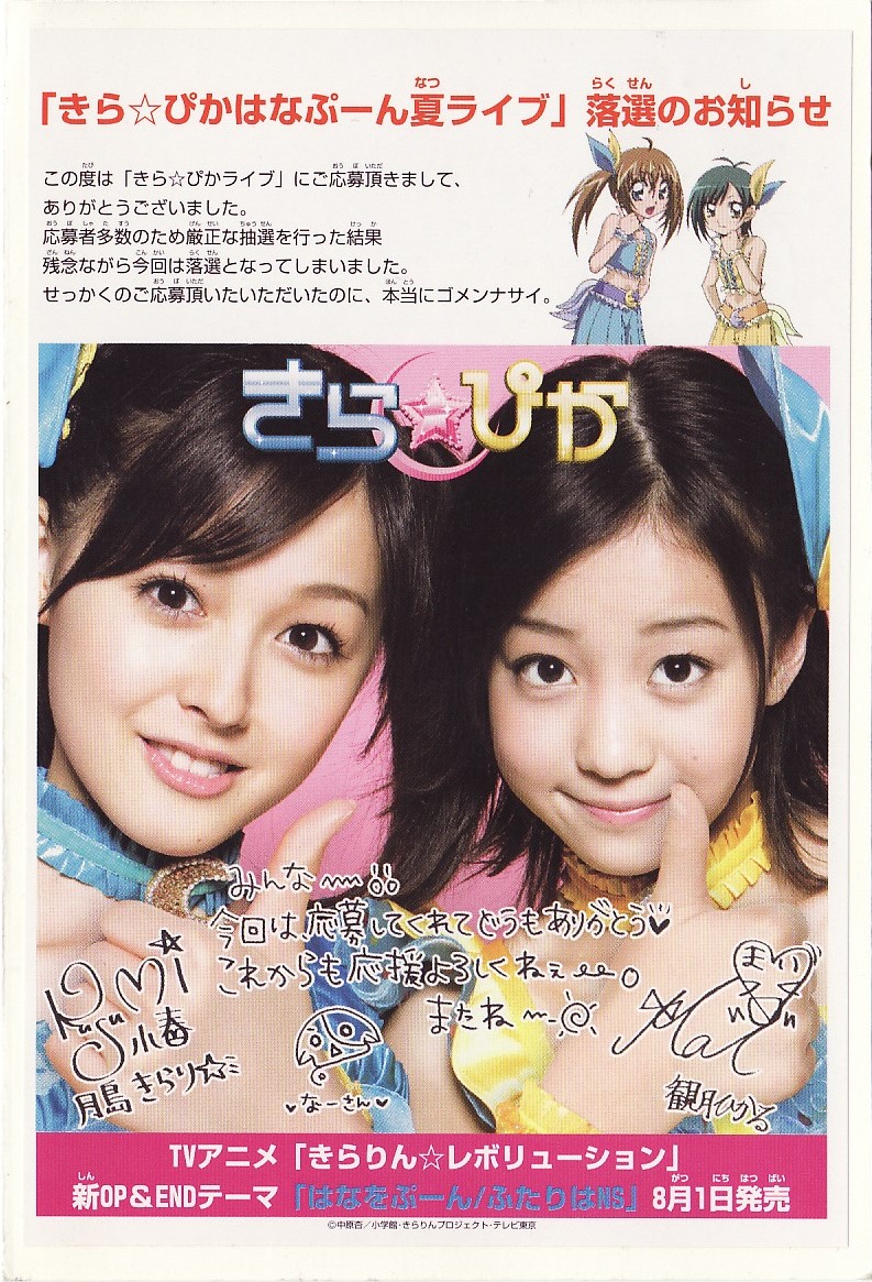 「きら☆ぴかはなぷーん夏ライブ」落選通知はがき