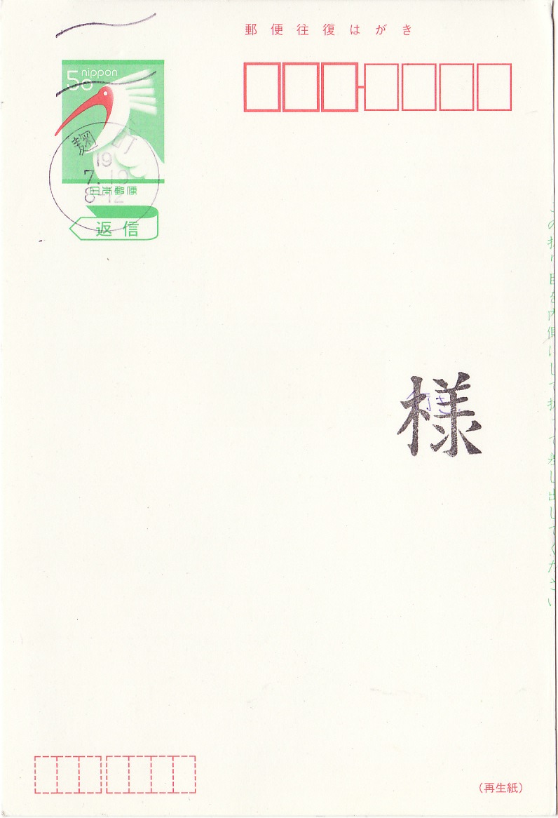 麹町郵便局(平成19年)2007年7月19日消印