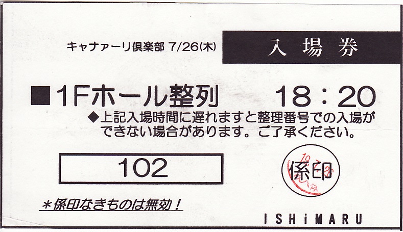 2007.07.26 キャナァーリ倶楽部「青春万歳!」イベント入場券