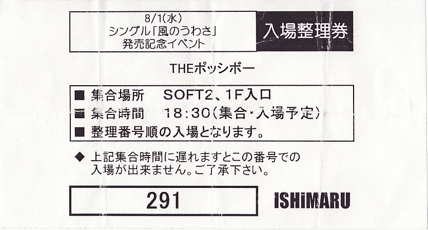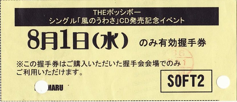 2007.08.01 THE ポッシボー「風のうわさ」イベント入場整理券&握手券