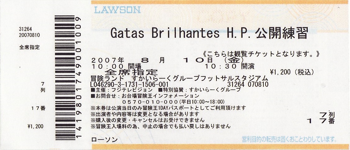 2007.08.10 Gatas Brilhantes H.P.「公開練習」チケット半券
