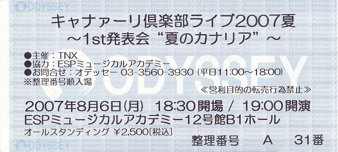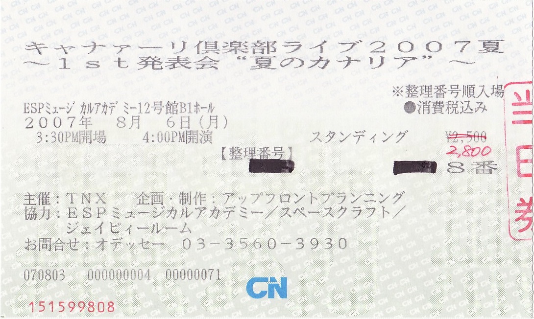 キャナァーリ倶楽部 2007夏「1st発表会“夏のカナリア”」チケット半券