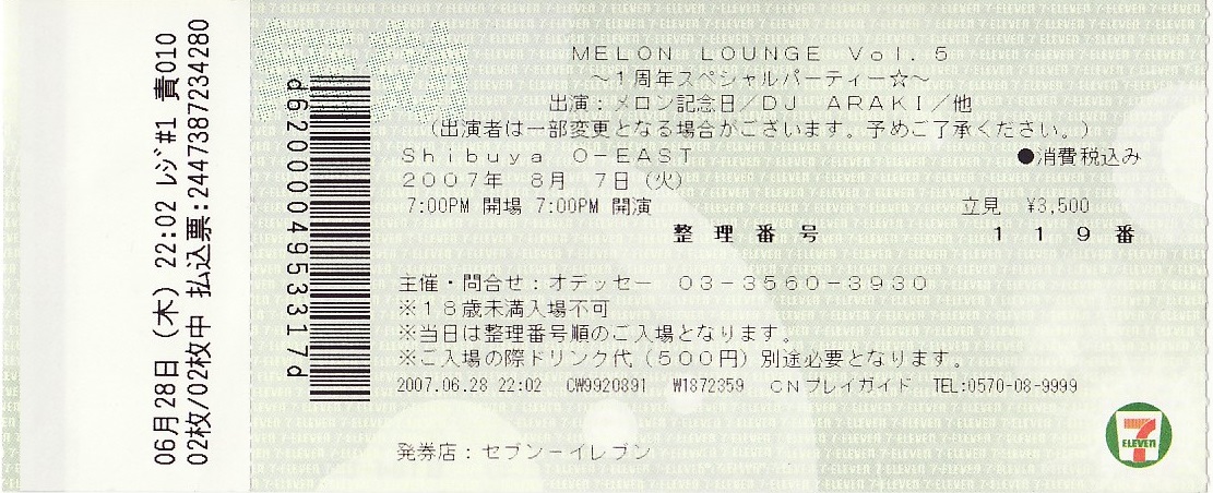 メロン記念日「メロンラウンジ VOL.05」チケット半券