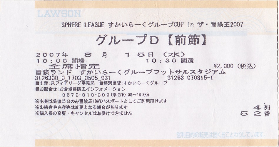 スフィアリーグ「ザ・冒険王2007」グループD【前節】チケット半券