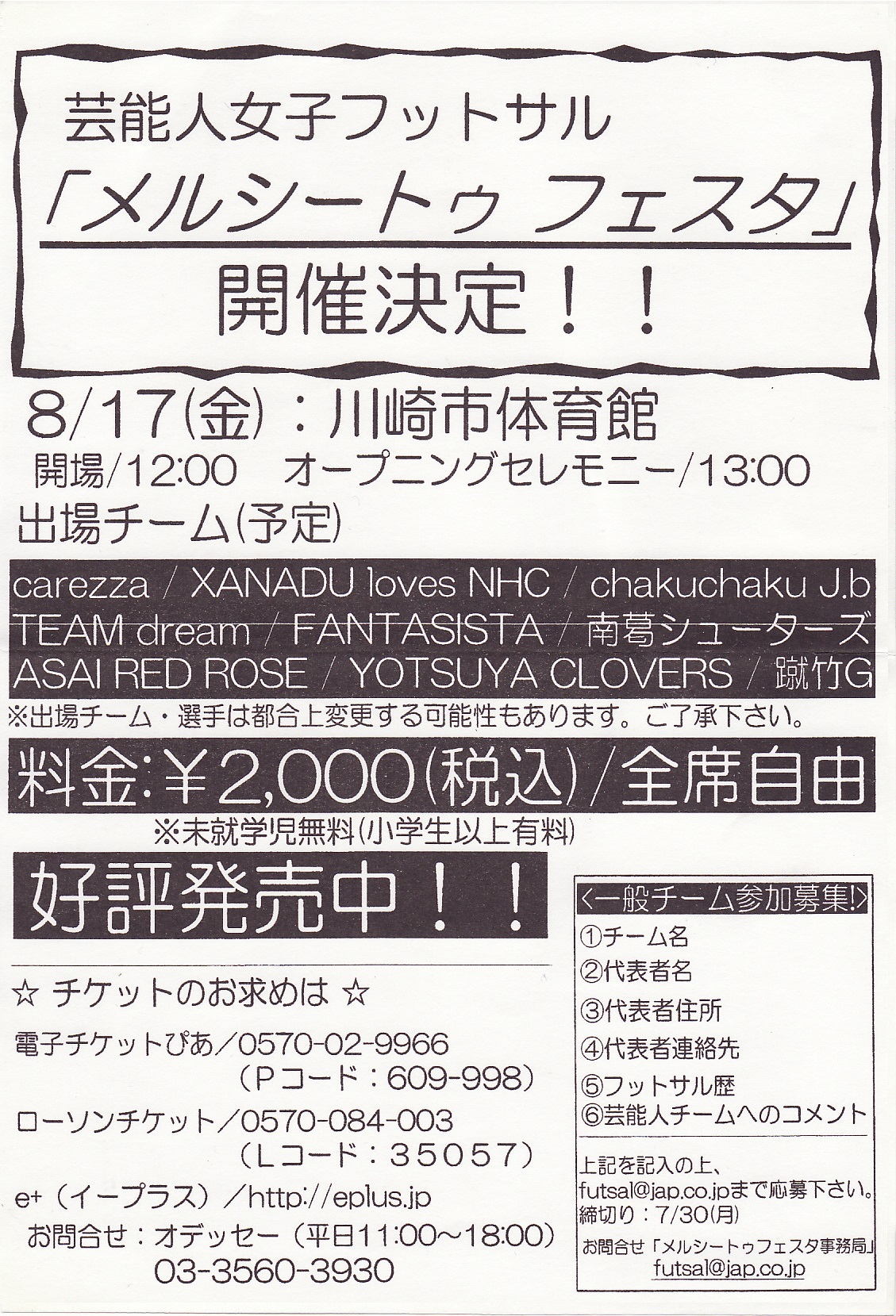 2007.08.17 芸能人女子フットサル「メルシートゥフェスタ」チラシ