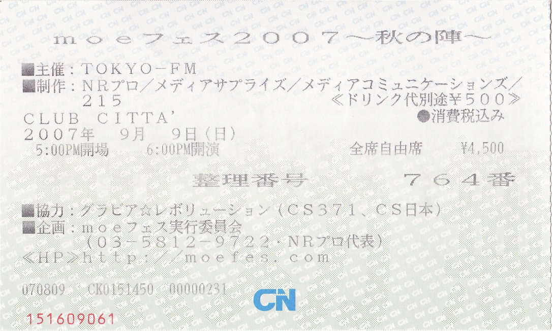 川崎クラブチッタ「moeフェス2007~秋の陣~第2部」チケット半券