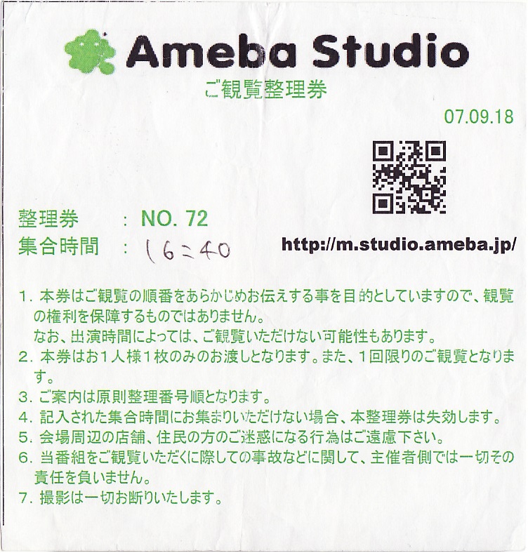 制コレGPメンバー「Ameba Studio」ご観覧整理券