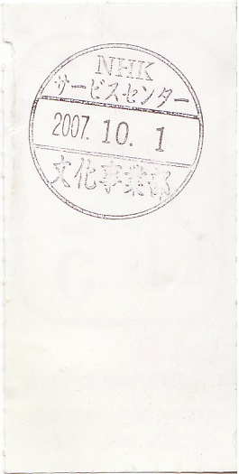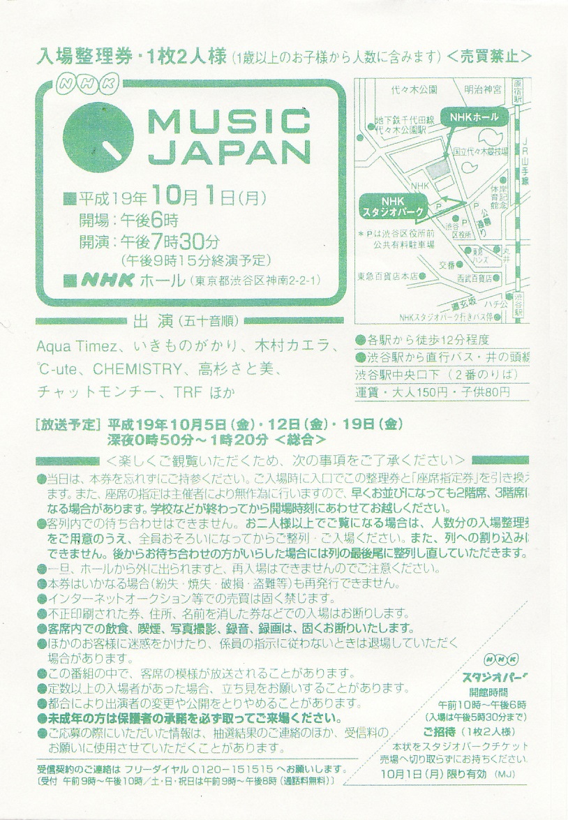 2007.10.01「MUSIC JAPAN」公開収録 観覧当選ハガキ
