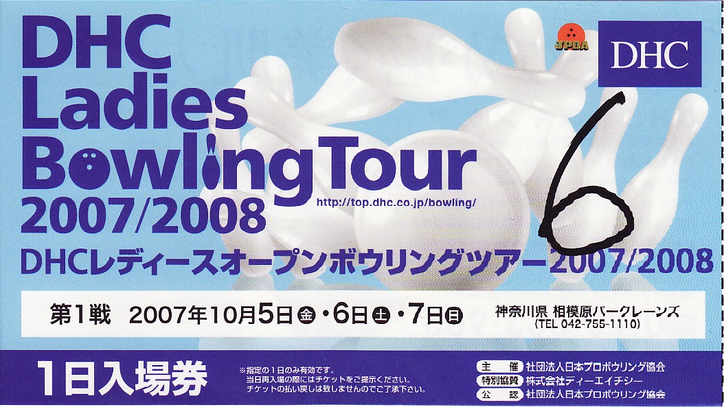 「DHCレディースオープン ボウリングツアー2007/2008 第1戦」チケット半券